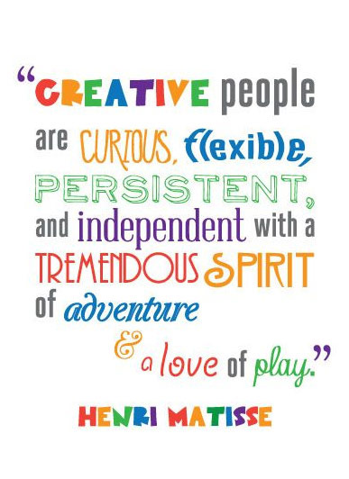 Les personnes créatives sont curieuses, flexibles, obstinées, indépendantes avec un insatiable esprit d’aventure et un amour du jeu. – Henri Matisse
