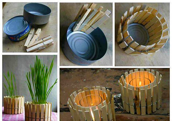 Vous n’aurez besoin que d’une boite de conserve, de quelques épingles à linge en bois et d’un peu de colle.